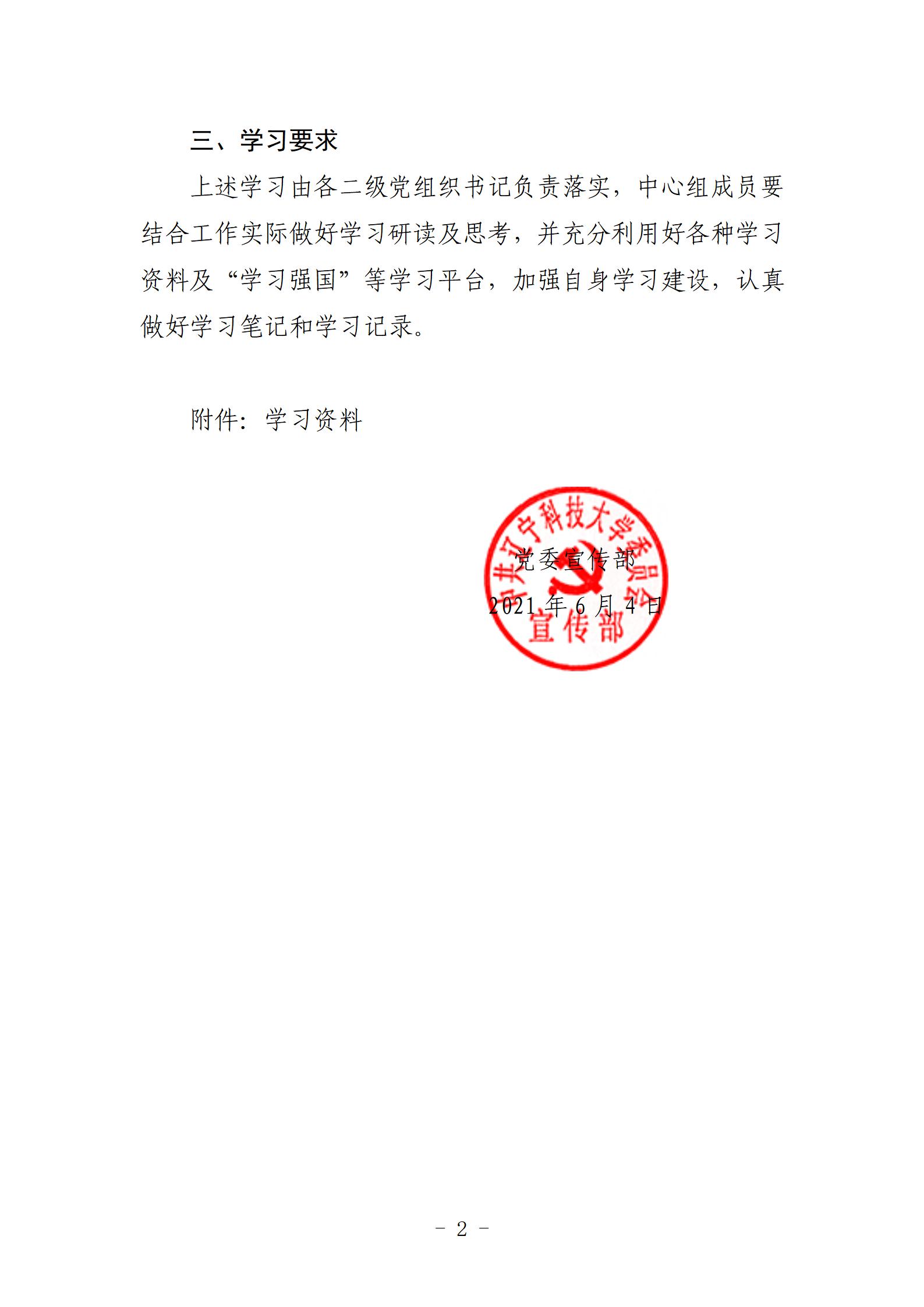 2021年6月第二次党委理论学习中心组学习安排意见