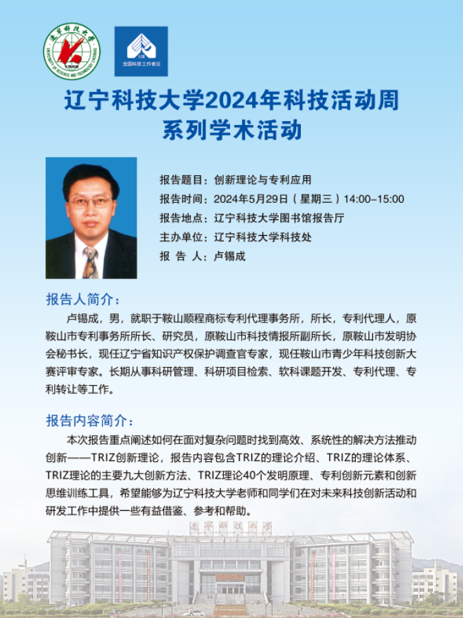 【科技活动周学术预告】创新理论与专利应用-辽宁科技 - 九九精品视频一区在线久久久久久久久久毛片精品美女|国产99久久久久久免费看|中文精品99久久国产|国产69精品久久久久9999|精品久久久久久中文字幕无码|亚洲熟妇无码久久精品国产精品99|精品国产天堂综合一区在线官网