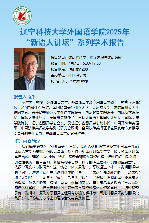 学术预告:体认翻译学:翻译过程与体认识解-辽宁科技 - 九九精品视频一区在线久久久久久久久久毛片精品美女|国产99久久久久久免费看|中文精品99久久国产|国产69精品久久久久9999|精品久久久久久中文字幕无码|亚洲熟妇无码久久精品国产精品99|精品国产天堂综合一区在线官网