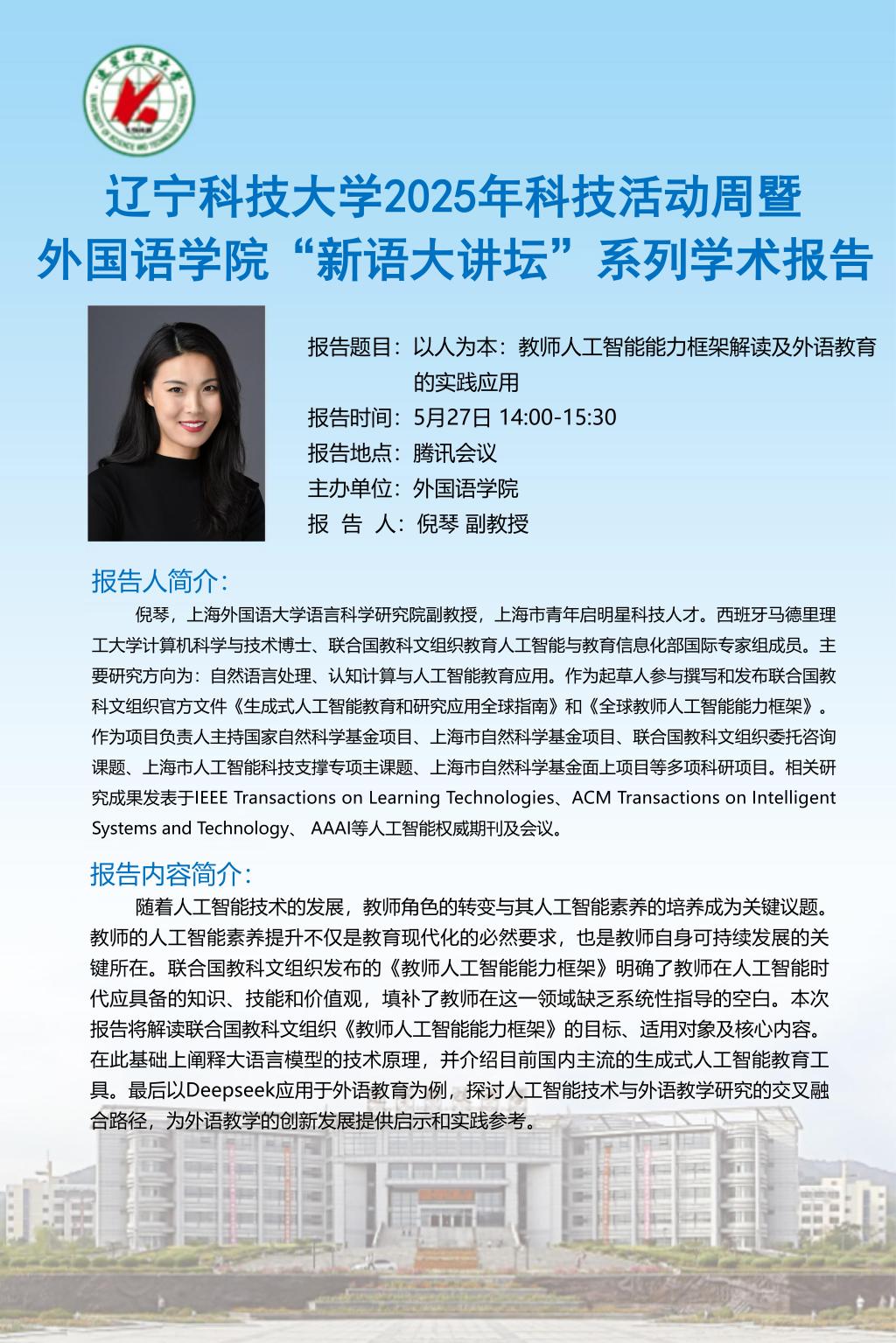 【科技活动周学术预告】以人为本:教师人工智能能力框架解读及外语教育的实践应用-辽宁科技 - 九九精品视频一区在线久久久久久久久久毛片精品美女|国产99久久久久久免费看|中文精品99久久国产|国产69精品久久久久9999|精品久久久久久中文字幕无码|亚洲熟妇无码久久精品国产精品99|精品国产天堂综合一区在线官网